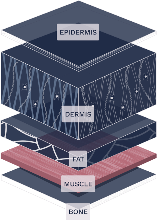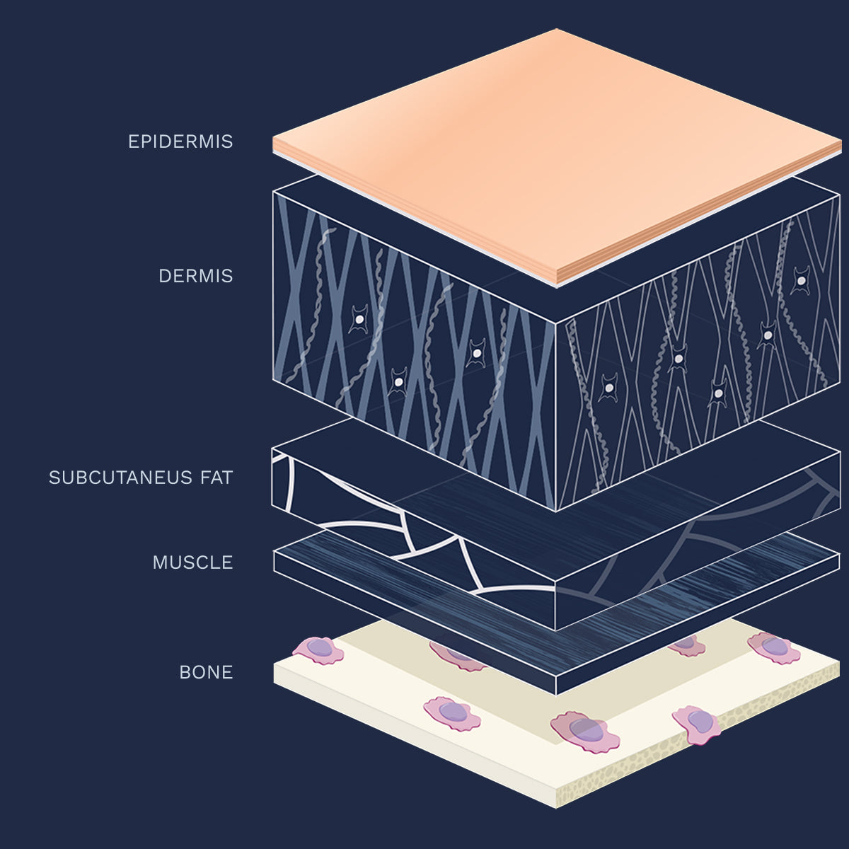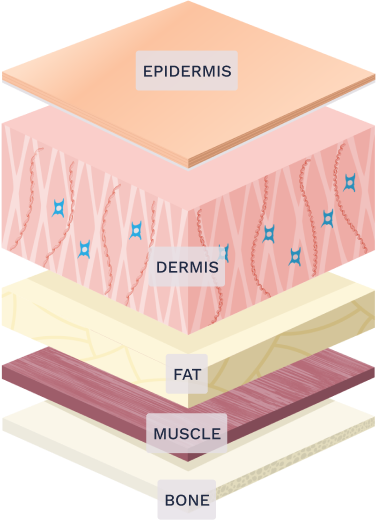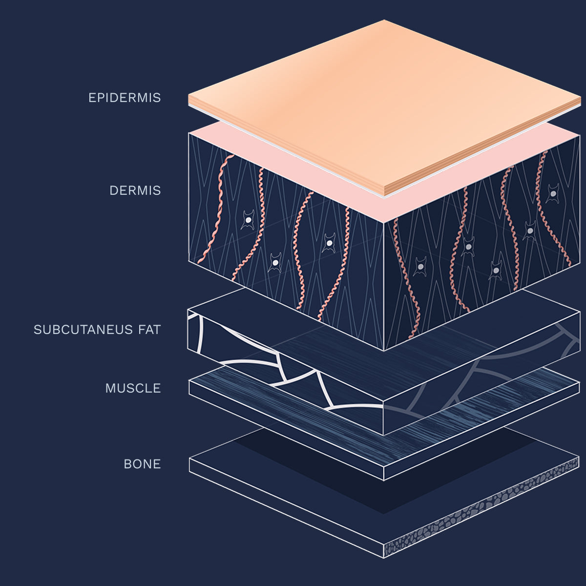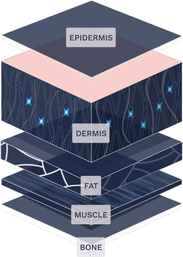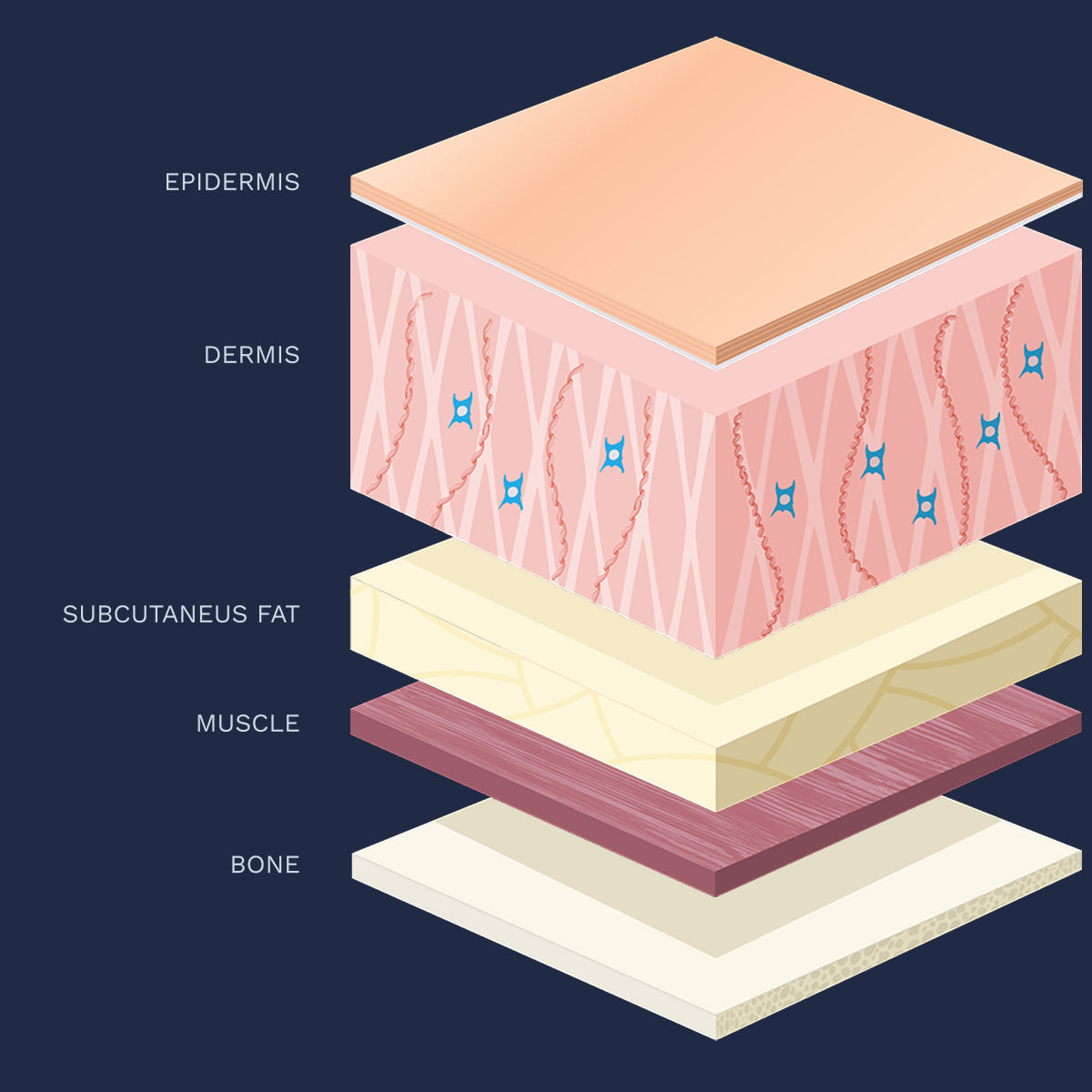 The biological activity proliferates these cells which produce collagen, elastin, and other muscle and skin fibers